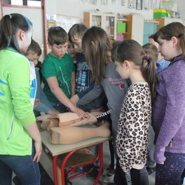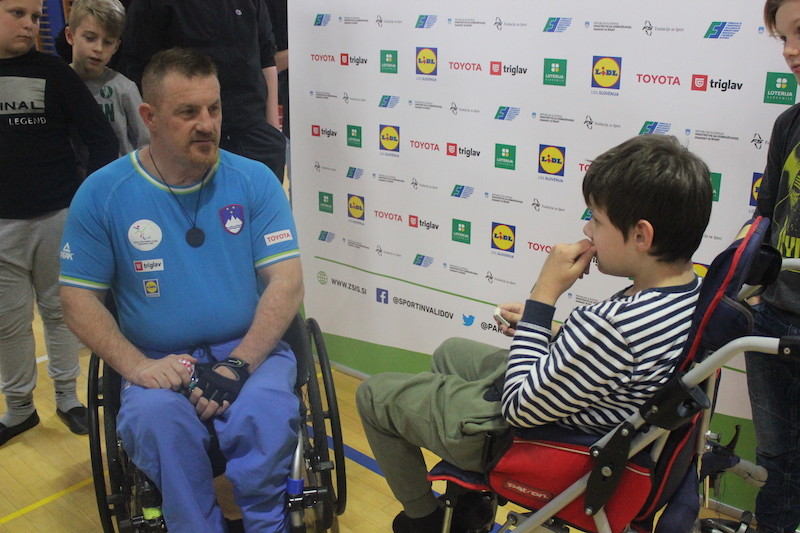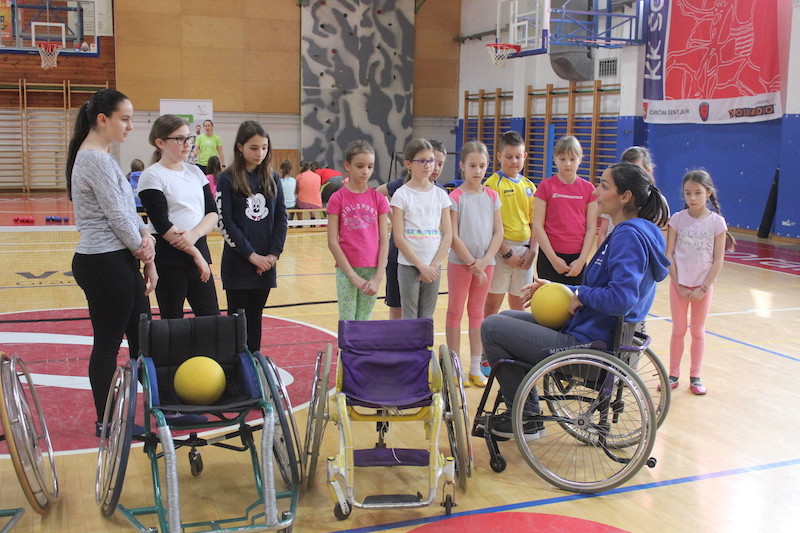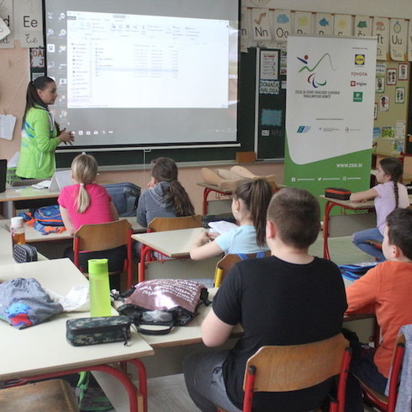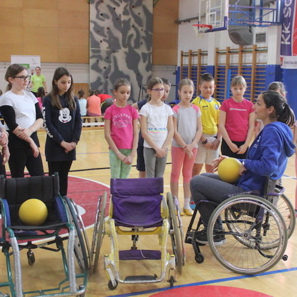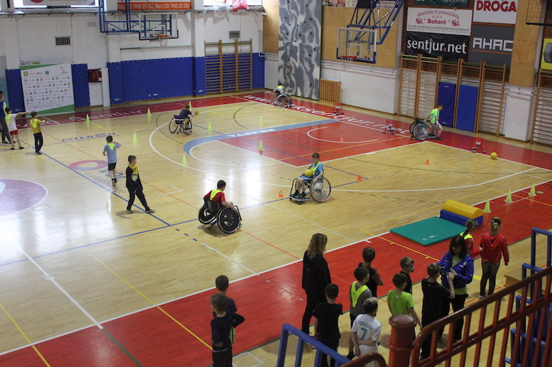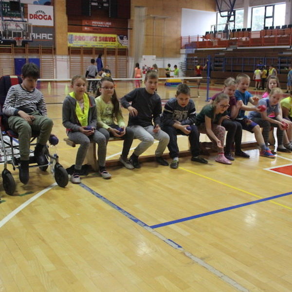 V sredo, 10. 4. 2019, je na OŠ Hruševec Šentjur poteka drugi paraolimpijski dan. Učenci so spoznali paraolimpijske športe, prisluhnili življenjski zgodbi invalida in praktično preizkusili poligon za slepe, košarko na vozičku, booccio in igro z zvenečo žogo. Zahvala ekipi z Zveze invalidov Slovenije - paraolimpijski komite za nepozaben dan.