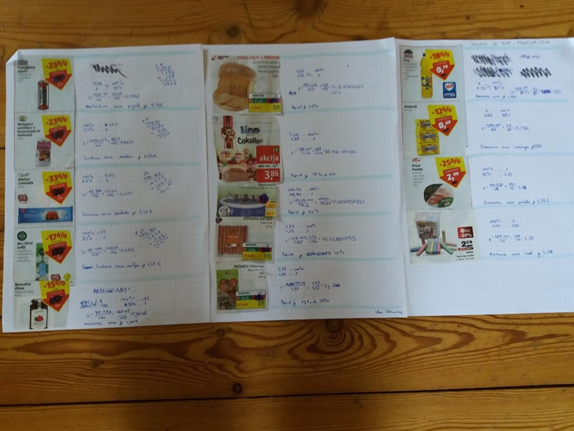 Sedmošolci so pri pouku matematike samostojno raziskovali reklame, oglaševanje popustov. Iz reklamnega materiala so izrezali izdelke, ki imajo popust. Računali so odstotek popusta, osnovno ceno izdelka brez popusta, ceno s popustom. Izdelali so plakate, knjigo popustov, pri tem so ugotovili, da vse zapisano na reklamah ne drži. Tako so razvijali kompetenco finančne in ekonomske pismenosti.