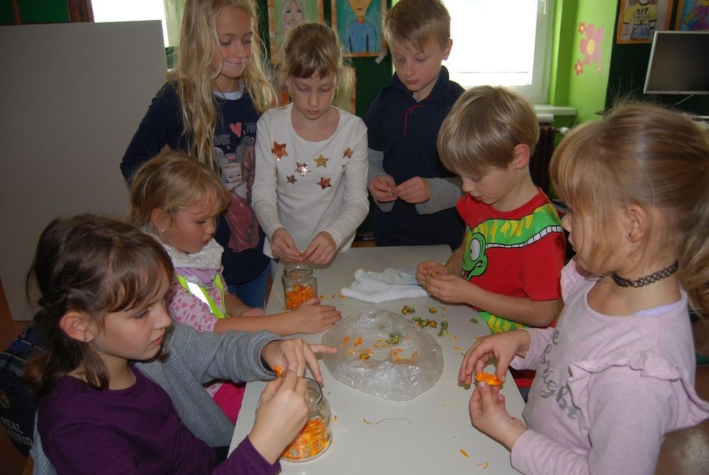 S srcem in predanostjo narejeno ognjičevo mazilo, so učenci prejeli v dar, ki ga bodo lahko uporabljali za lajšanje tegob.