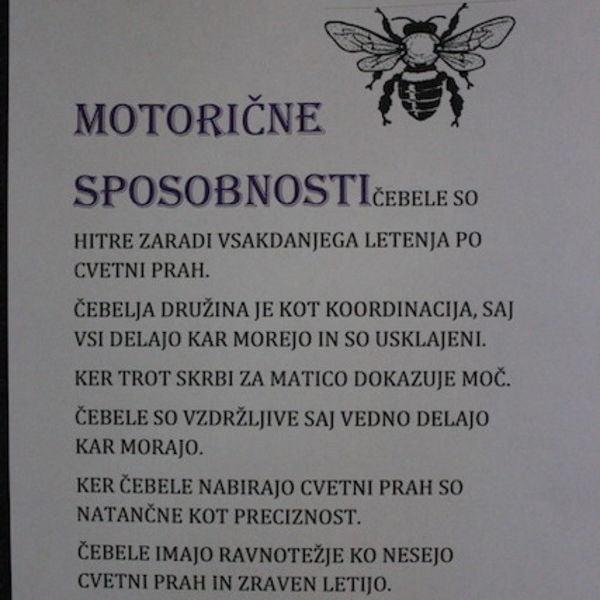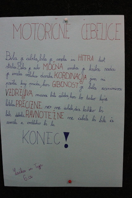 delile z vrstnicami. Praktično so prikazale sklope vaj za razvoj ustreznih gibalnih spobnosti. Nato so motorične sposobnosti iskale še pri čebelicah. Izdelki so bili januarja in februarja 2020 razstavljeni v avli šole.