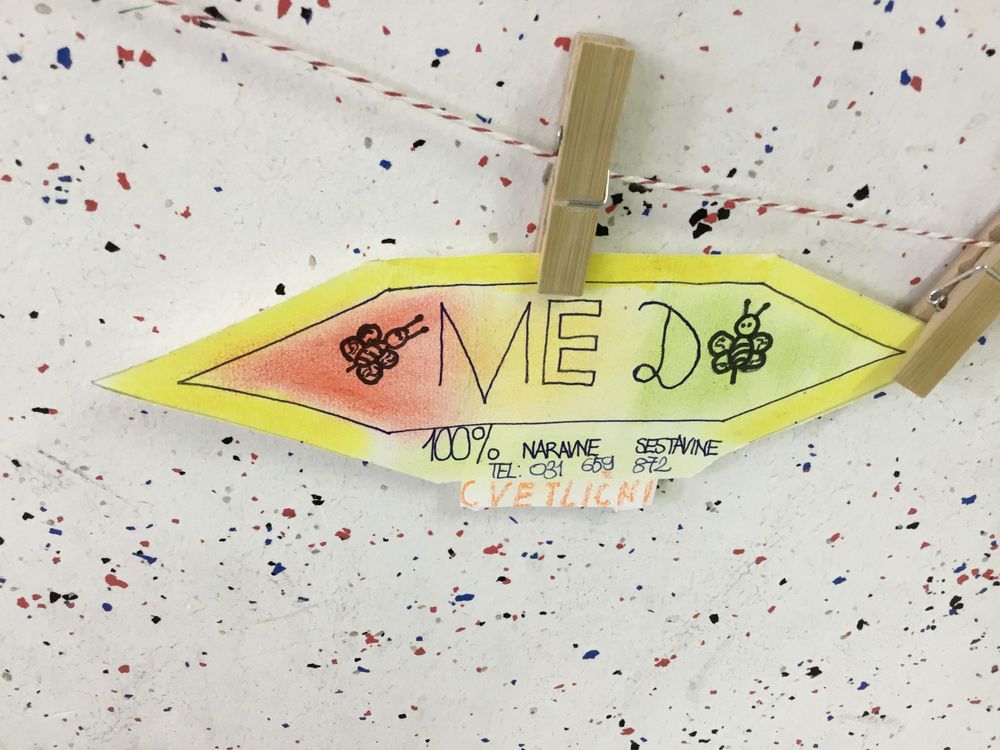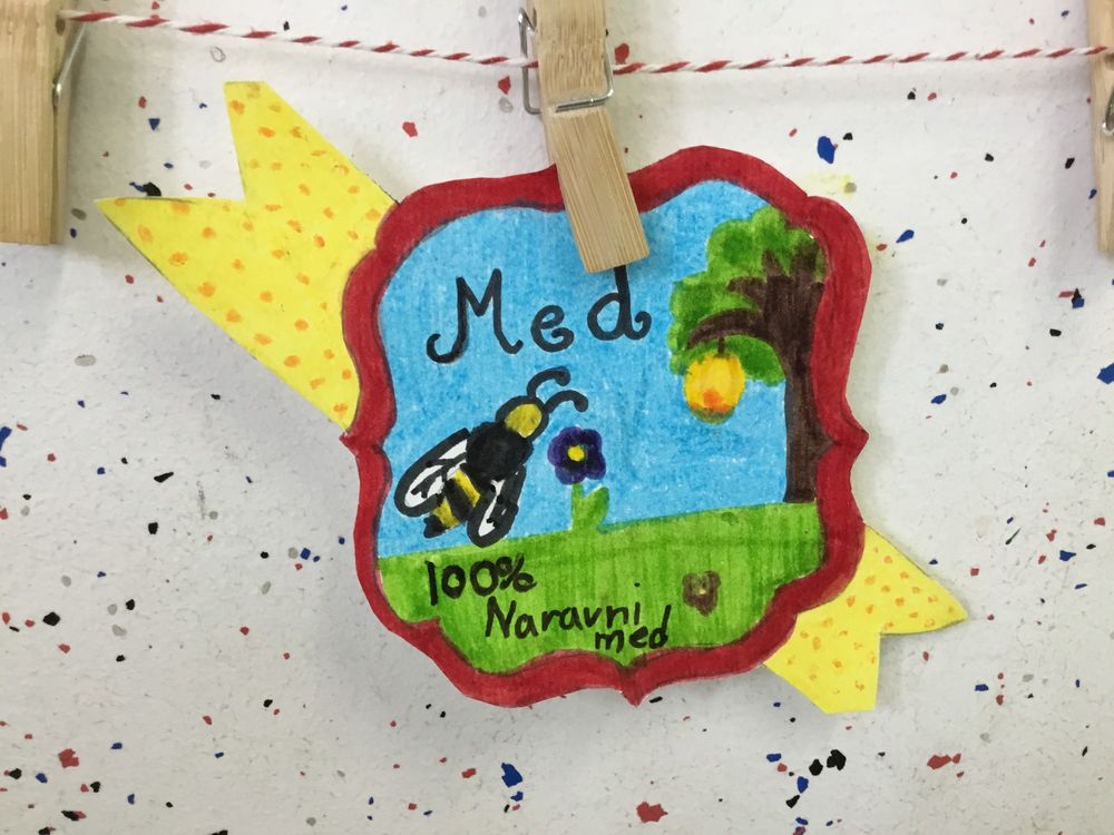 Z učenci 5. b smo po uvodnem delu ponovitve znanja o čebelah, pogledali nekaj fotografij ustekleničenega medu. Povedali so katerega izmed teh bi kupili in zakaj. Ugotovili smo, da jih je prej kot vsebina medu prepričala lepa etiketa na medu. Dobili so zadolžitev, da se prelevijo v vlogo čebelarja, ki bi želel prodreti s svojimi izdelki na trg in bi si skušal oblikovati čim bolj izvirno, unikatno etiketo za svoj med.