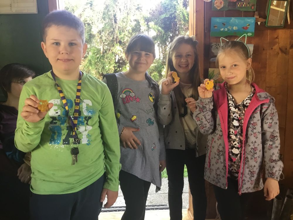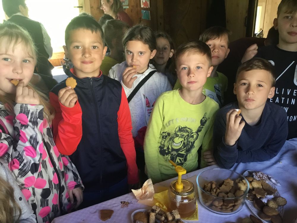 V petek, 19. 4. 2019, smo se učenci 2. in 3. razredov odpravili k čebelnjaku Čebelarskega društva Šentjur, kjer smo spoznali življenje in delo čebel, pomagali pri peki medenjakov in sejanju medovitih rastlin. Kako smo se imeli, si lahko ogledate na spodnjih fotografijah.