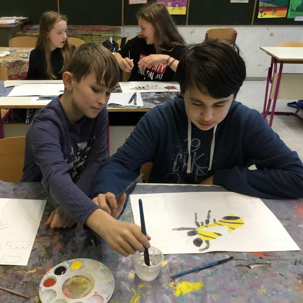 Na spodnjih slikah si lahko ogledate, kako učenci ustvarjajo pri pouku in v OPB.