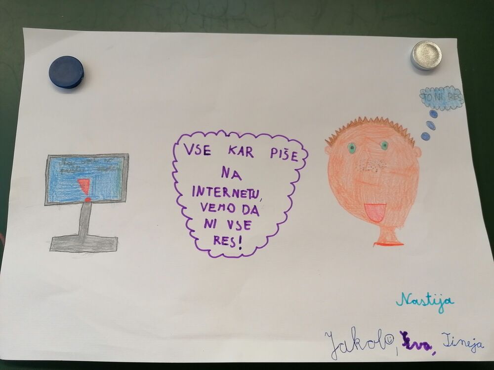 mlajši pa so preko pogovora in pripravljenih dejavnostih odkrivali pasti pri uporabi interneta. Prvošolci so med drugim tudi preverili svoje spletno znanje ter vedenje ob ogledu risank. Aktivnosti drugošolcev ter pravila varnega vedenja na spletu tretješolcev, ki so jih prikazali na plakatih, si lahko ogledate na spodnjih slikah.