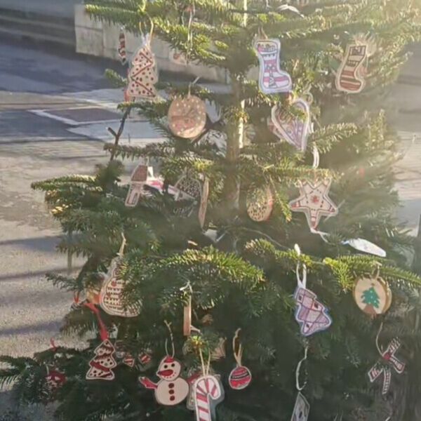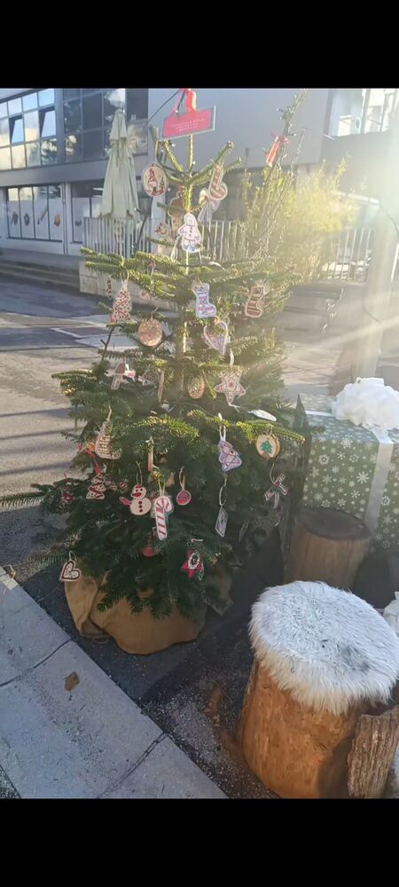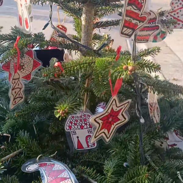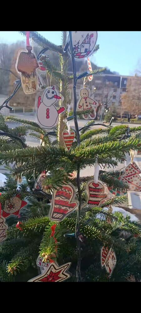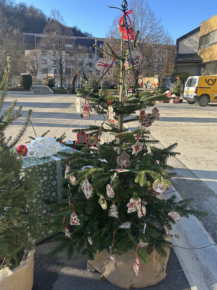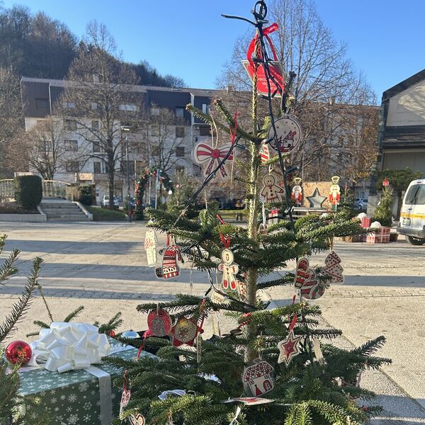 Na trgu pred občino Šentjur smo tudi na OŠ Hruševec, skupaj z drugimi društvi in šolami, postavili praznično okrašeno smrečico, ki so jo z lepimi okraski opremili naši učenci četrtega, petega in šestega razreda.