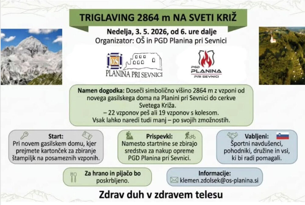 Vabljeni na prav poseben rekreativni izziv Triglaving, ki ga organizira OŠ Planina pri Sevnici v sodelovanju s PGD Planina pri Sevnici!
