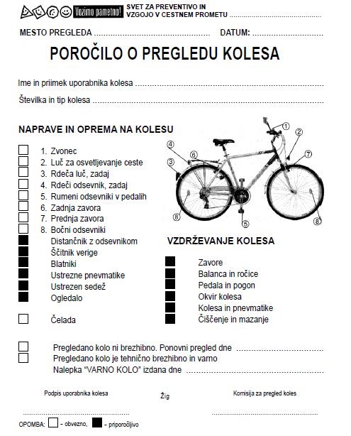 • brezhibno opremljeno kolo za cestno vožnjo (lahko si ga izposodijo tudi v šoli),